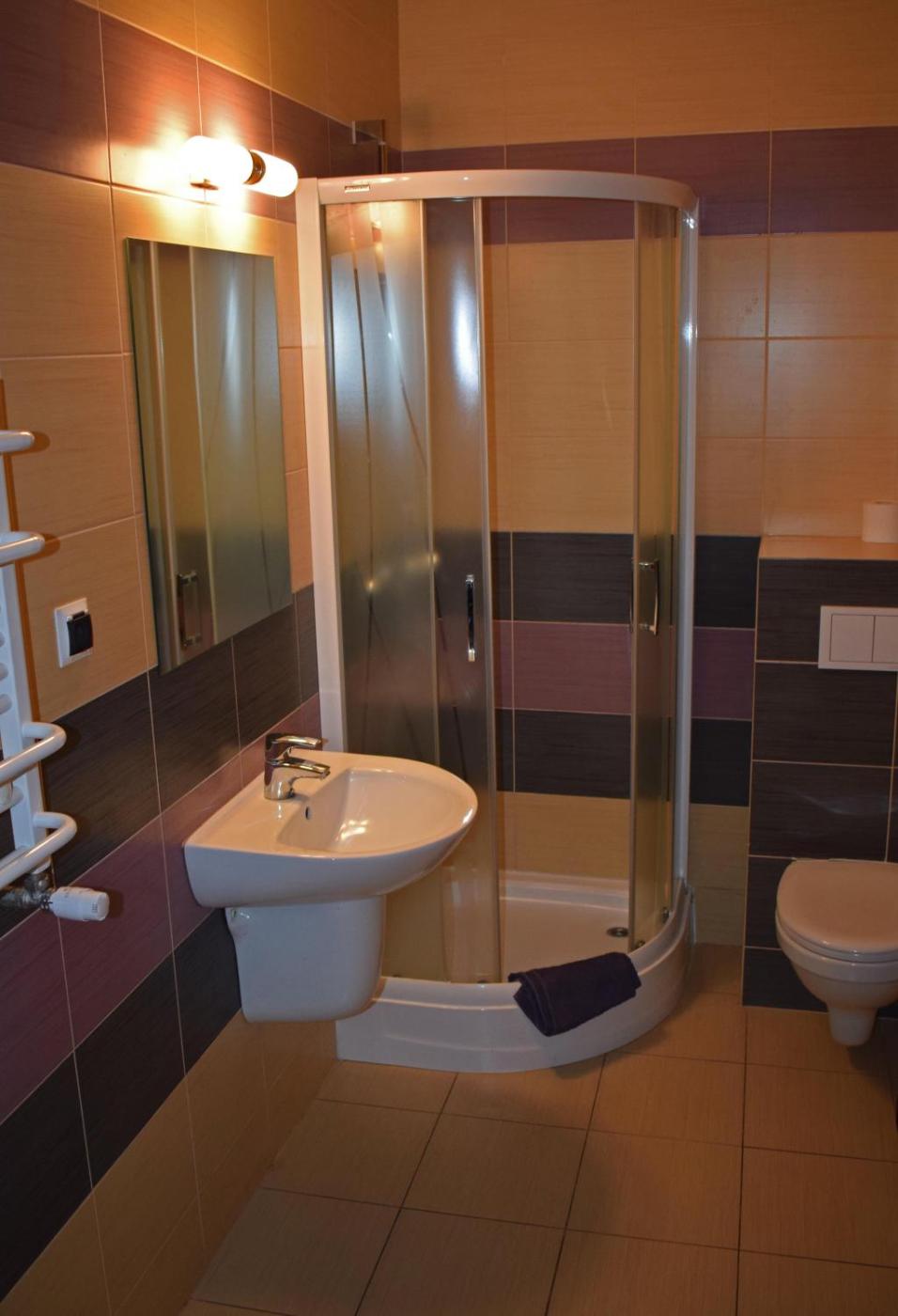 Pokój Czteroosobowy. The quadruple room provides a wardrobe, an electric kettle, as well as a private bathroom featuring a shower. This quadruple room offers heating and a flat-screen TV. The unit offers 3 beds. Pokój Czteroosobowy - 4 osobowy. Powierzchnia pokoju ok.: 16 mkw. ;